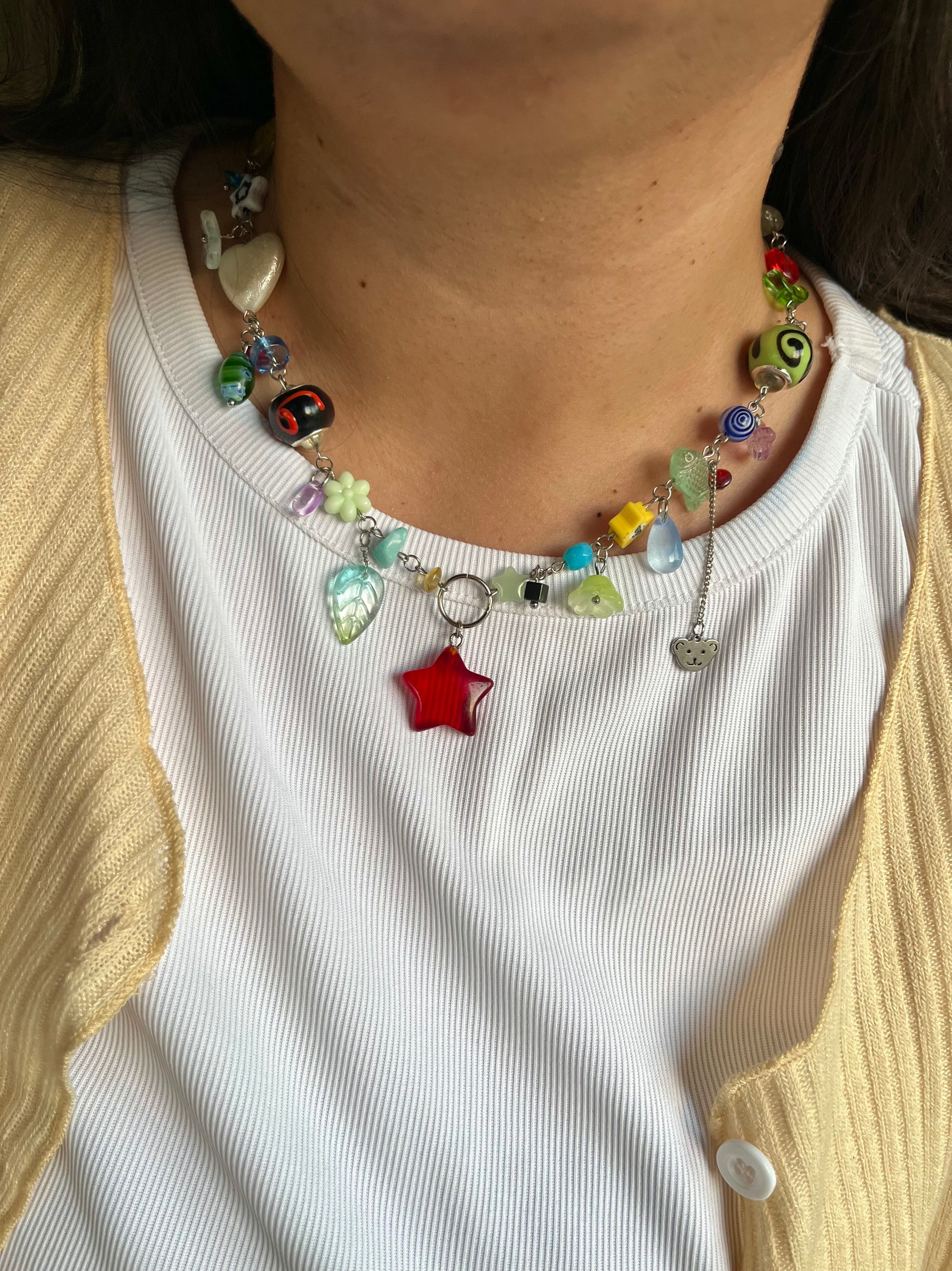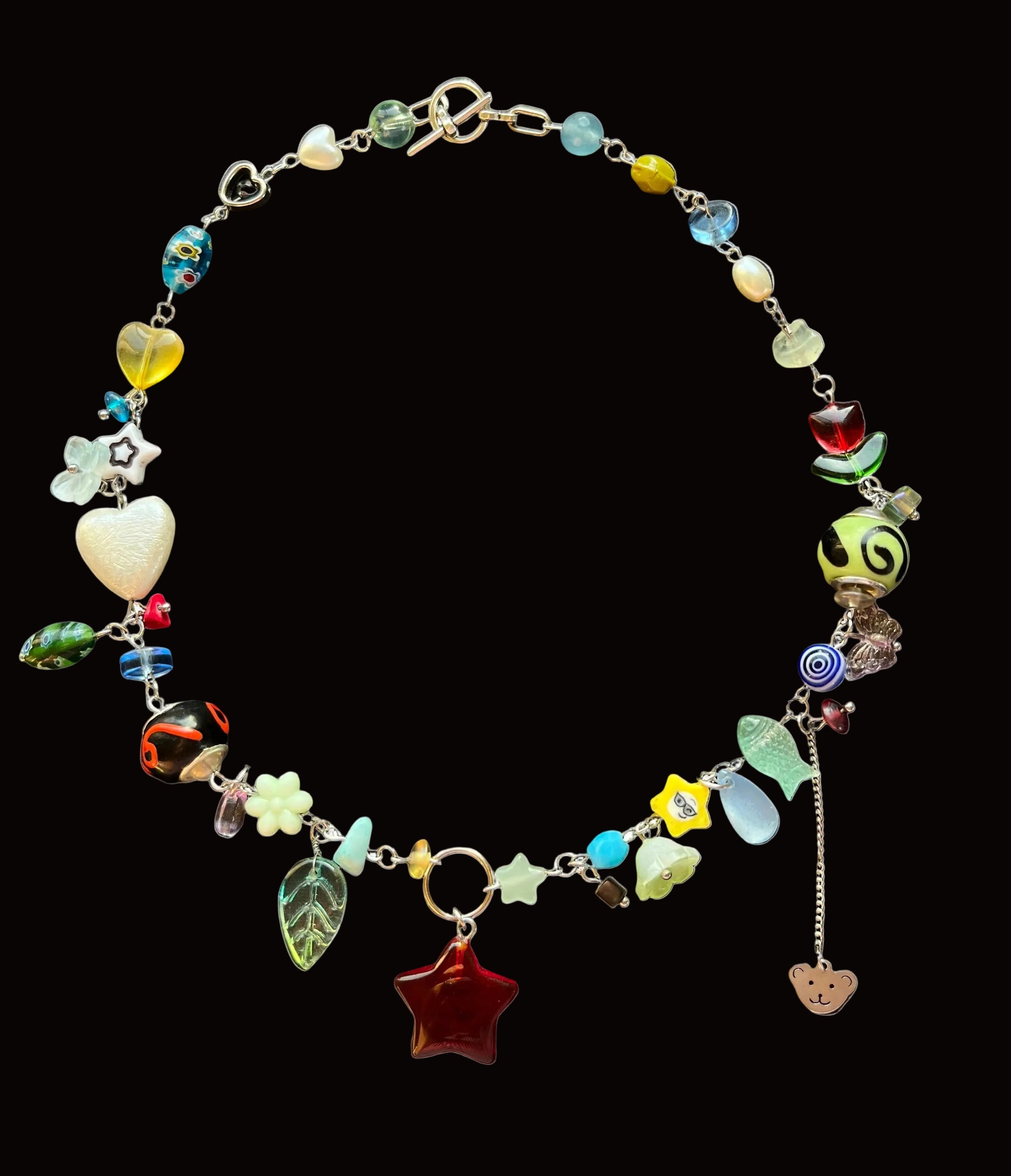 a very playful beadsoup necklace | made using thoughtfully selected beads | Tibetan toggle for closing | many diff shapes and tiny details | no remakes